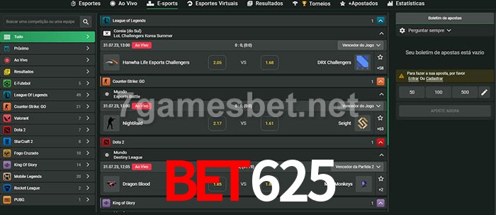 A aposta Bet625 oferece aos jogadores a experiência mais conveniente de apostas em eSports!